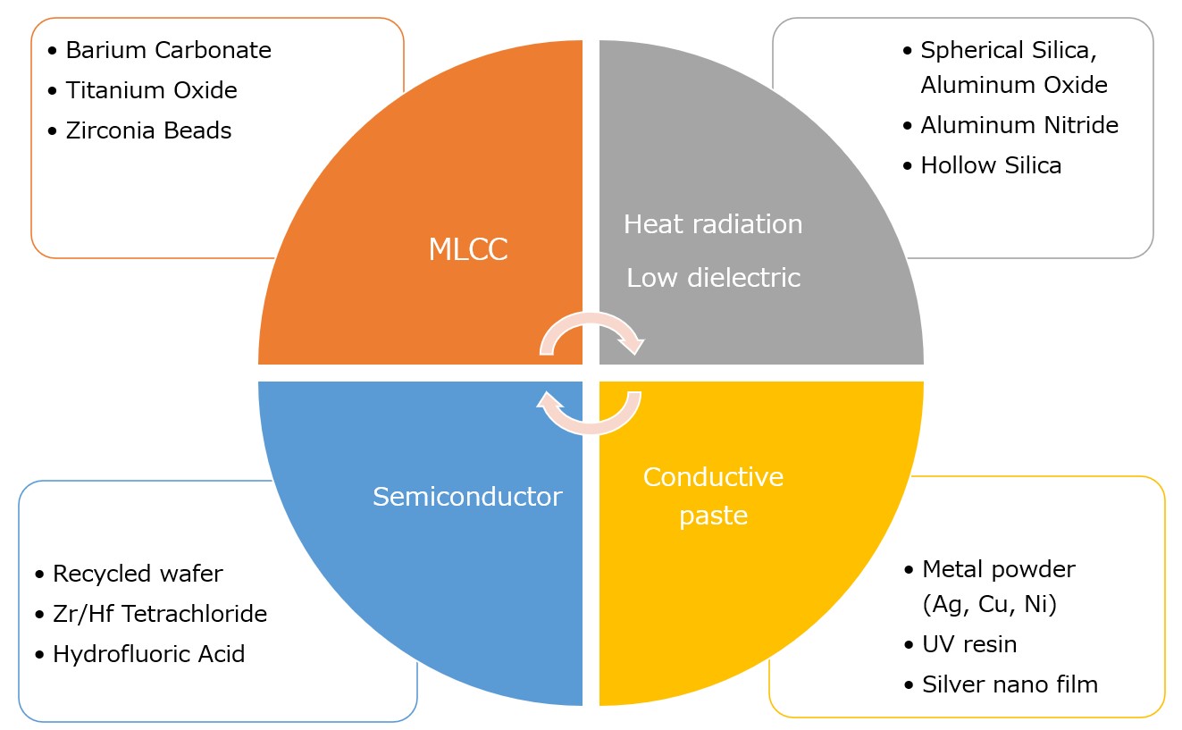 We are proceeding with a project of products specializing in 5G. We jointly develop products that meet customer needs in the fields of MLCC, heat dissipation / low dielectric materials, electronic pastes, and semiconductors.