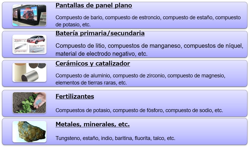 Este departamento originalmente se enfocaba en negocios por materiales primas para pantallas, y hoy nosotros constantemente vendemos nuevas mercancías a nuestros clientes existentes y también proveemos nuestros productos existentes a nuevos clientes, expandiendo nuestras áreas de comercio ampliamente desde productos de alto valor como baterías, catalizadores y materiales electrónicos hasta productos de uso general como fertilizantes y aleaciones.