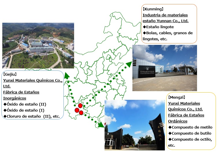 Grupo Yunnan Estaño tiene su base en la provincia de Yunnan en China, y es el mayor fabricante de productos de estaño en el mundo que cumple mantener su cadena de suministro estable de minerales, lingotes y compuestos orgánicos/inorgánicos. Su cantidad de producción de estaño lingotes siempre es lo más grande en el mundo. Su porcentaje de ocupación en países extranjeros es aproximadamente por 17%, y su cuota de mercado doméstico en China es aproximadamente por 45%. Sus lingotes son internacionalmente conocidos como «la marca YT».