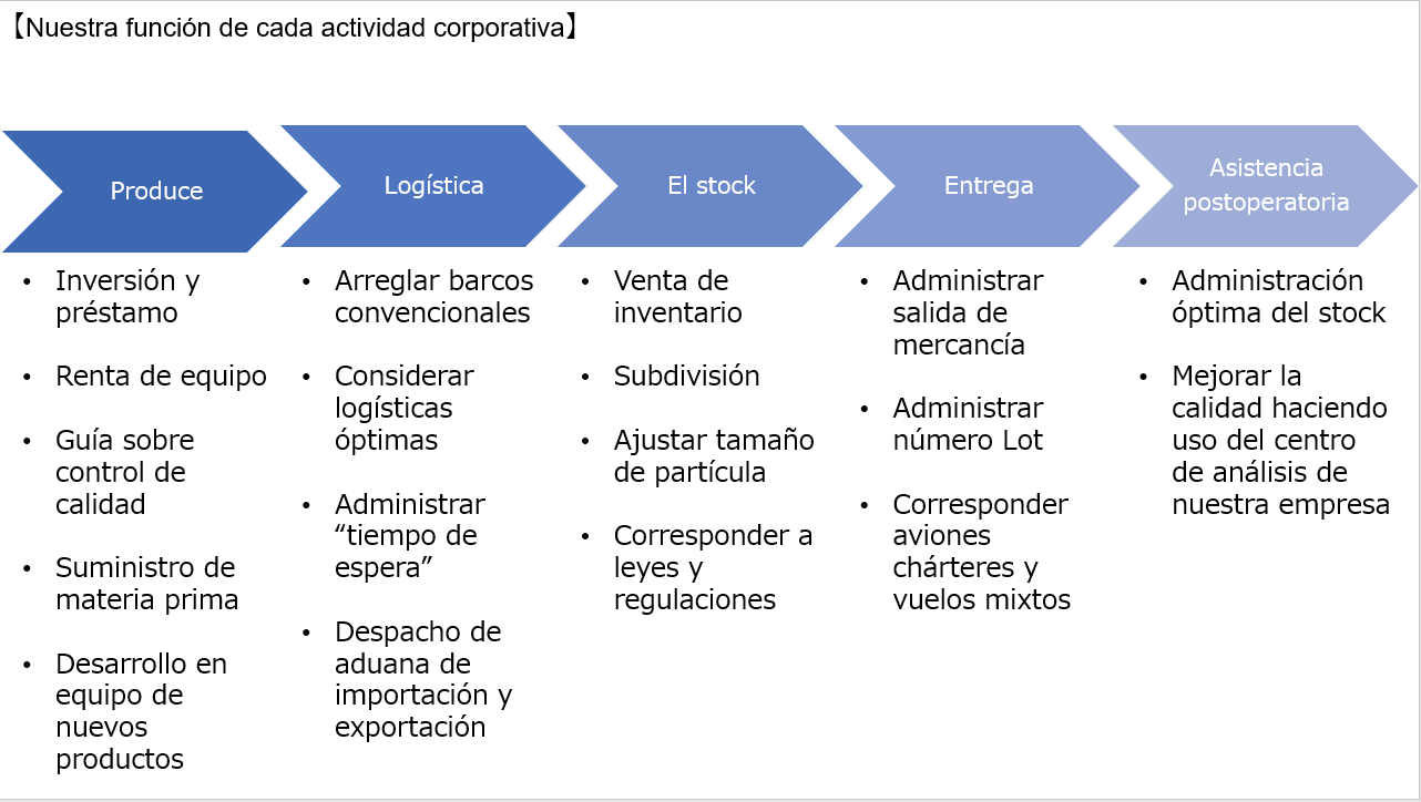 Haciendo uso de nuestros 40 años de experiencia del negocio y la relación fuerte de confianza con nuestros proveedores proveemos varios servicios a nuestros clientes adentros y afueras de Japón, además de importar/exportar los productos.