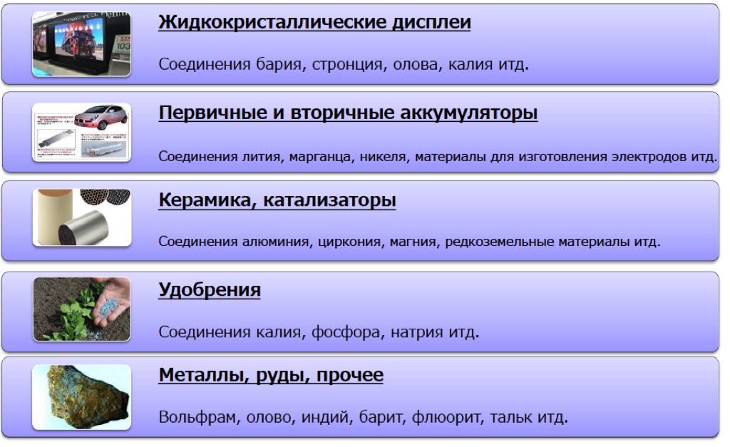 продукцию с высокой добавленной стоимостью, такую как аккумуляторы, катализаторы